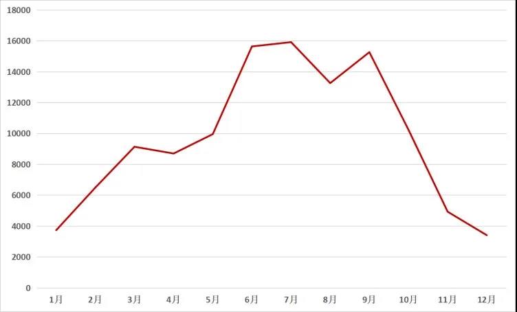 花生作為油料作物,近年來種植面積呈現(xiàn)穩(wěn)定增長(zhǎng)的發(fā)展趨勢(shì),據(jù)行業(yè)數(shù)據(jù)顯示,2020年全國(guó)花生總種植面積為7560萬畝,較上年的7166萬畝增加5.50%,我們從用戶對(duì)花生收獲機(jī)的關(guān)注度人數(shù)不難看出,在所有農(nóng)機(jī)品類都下滑的情況下,花生收獲機(jī)卻依然呈現(xiàn)增長(zhǎng)態(tài)勢(shì),農(nóng)機(jī)通網(wǎng)用戶訪問對(duì)花生收獲機(jī)的訪問量從2019年10.9萬增長(zhǎng)至2020年11.7萬,同比2019年,增長(zhǎng)6%。從2020年花生收獲機(jī)關(guān)注度月度走勢(shì)圖來看,在6-10月的花生收獲季節(jié),關(guān)注的用戶較多。